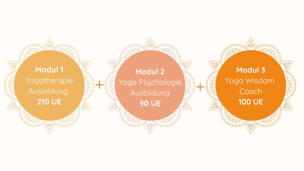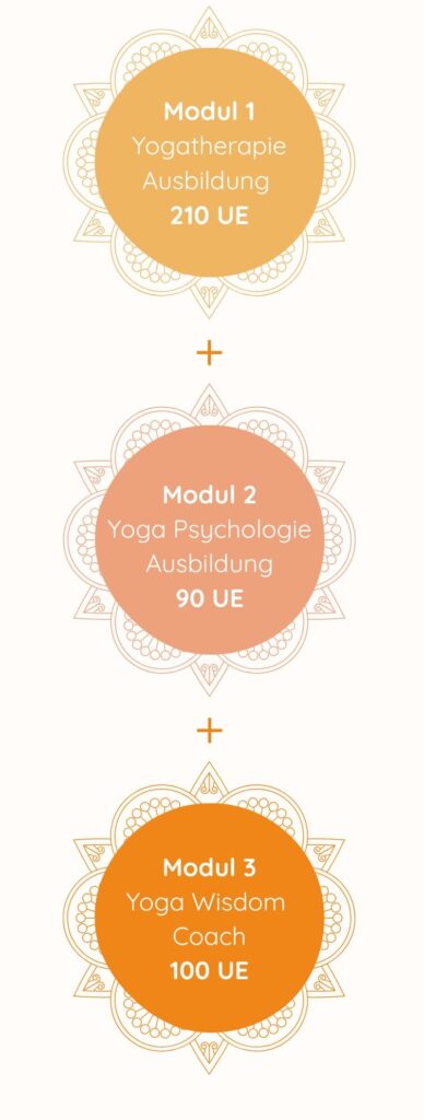 Die Ausbildung kann durch zwei weiterführende Module ergänzt werden: Modul 2, die Yoga-Psychologie-Ausbildung (90 UE), vertieft das Wissen über den Geist und seine Prozesse, während Modul 3, die Ausbildung zum Yoga Wisdom Coach (100 UE), den Fokus auf ganzheitliche Begleitung und Coaching legt. Zusammen bilden alle drei Module eine umfassende und aufeinander aufbauende Ausbildung.